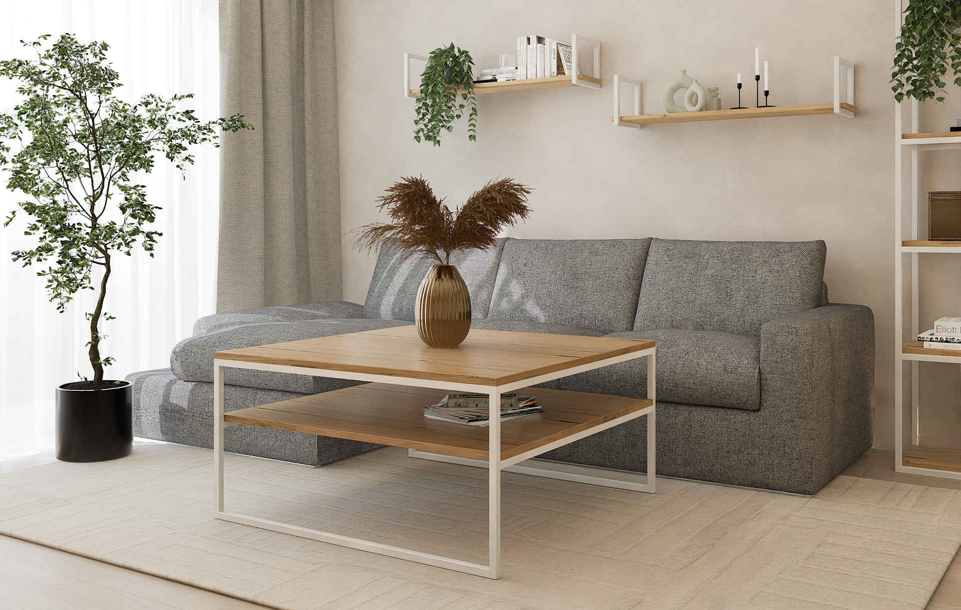 Twój dom zasługuje na meble, które są piękne, praktyczne i trwałe. Nasz stolik kawowy 100x100x50 z dębowym blatem i półką to idealne połączenie tych cech. Wybierz komfort i styl, które przetrwają próbę czasu.