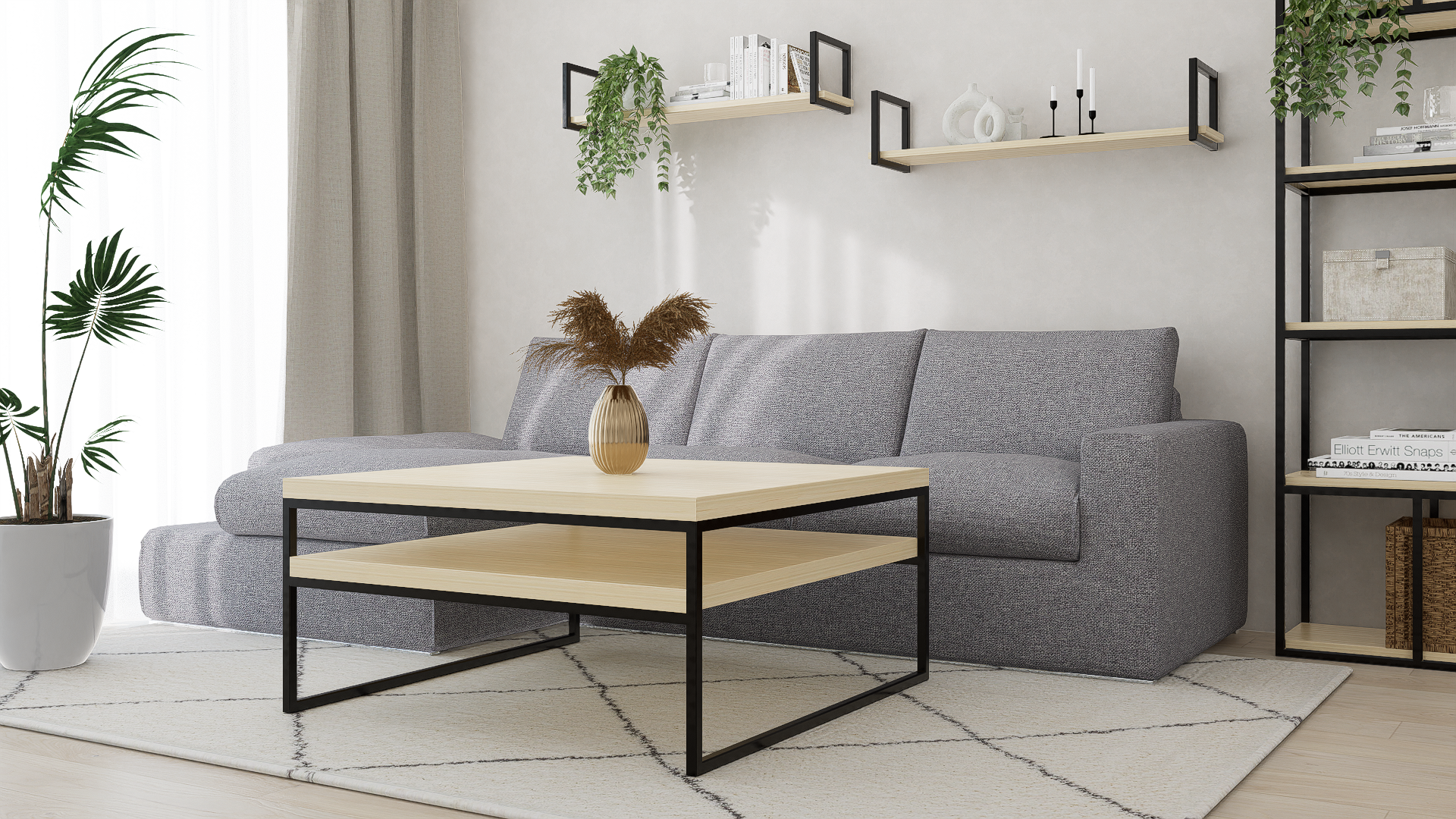 Twój dom zasługuje na meble, które są piękne, praktyczne i trwałe. Nasz stolik kawowy 100x100x50 z jesionowym blatem i półką to idealne połączenie tych cech.