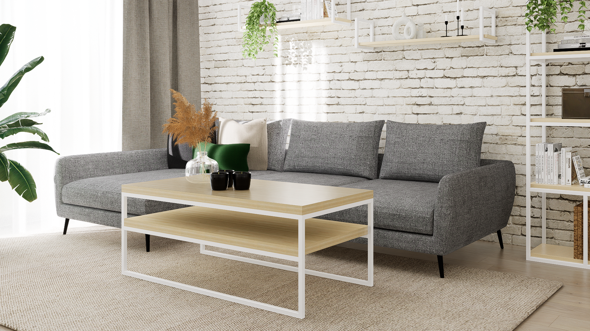 Twój dom zasługuje na meble, które są piękne, praktyczne i trwałe. Nasz stolik kawowy 120x60x50 z jesionowym blatem i półką to idealne połączenie tych cech.