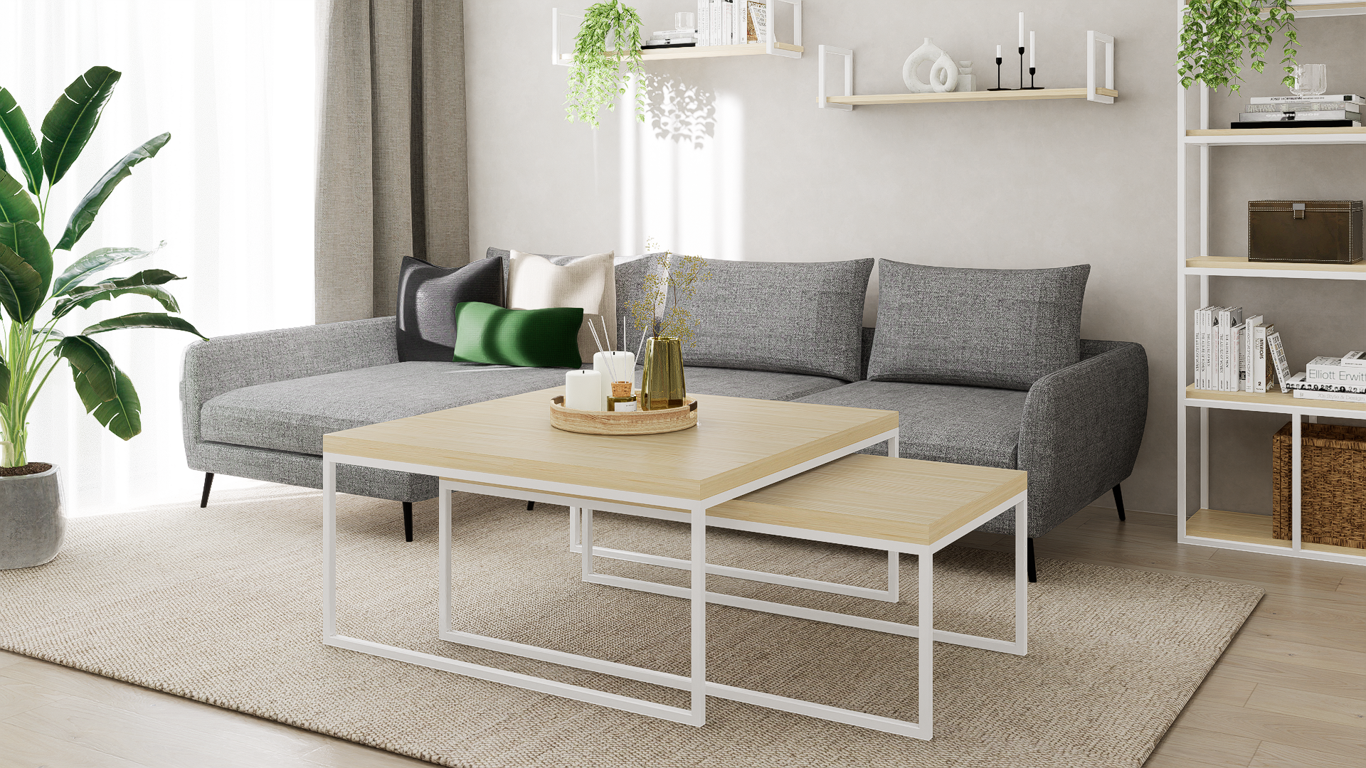Chcesz nadać swojemu domowi wyjątkowy industrialny akcent? Dzięki wyjątkowo designerskiemu zestawowi stolików kawowych to możliwe. Prosta stalowa rama łączy się z pięknym, naturalnym jesionowym blatem, co stanowi element dekoracyjny w salonie, korytarzu, biurze i nie tylko. Umieść doniczki, kubki, dekoracje lub czasopisma na stolikach, aby zawsze mieć je pod ręką.