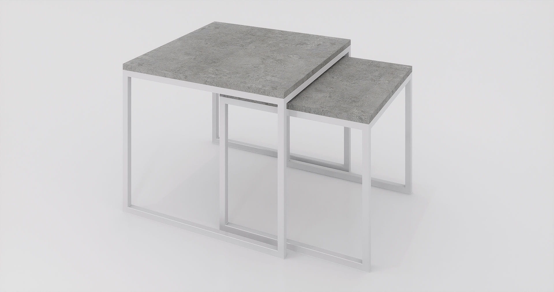 Zestaw stolików kawowych 60x60x50 + 50x50x45 Beton architektoniczny | Biały