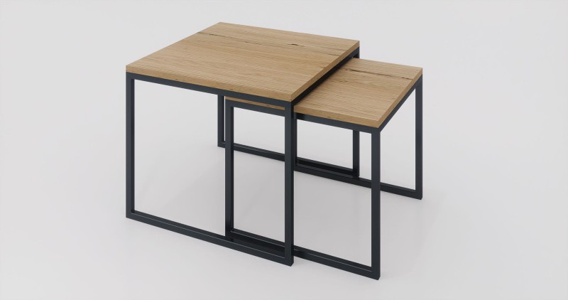 Zestaw stolików kawowych 60x60x50 + 50x50x45 Dąb | Czarny